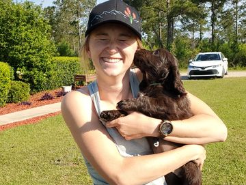 Ashely and her new buddy Ollie ready to go to Iowa
